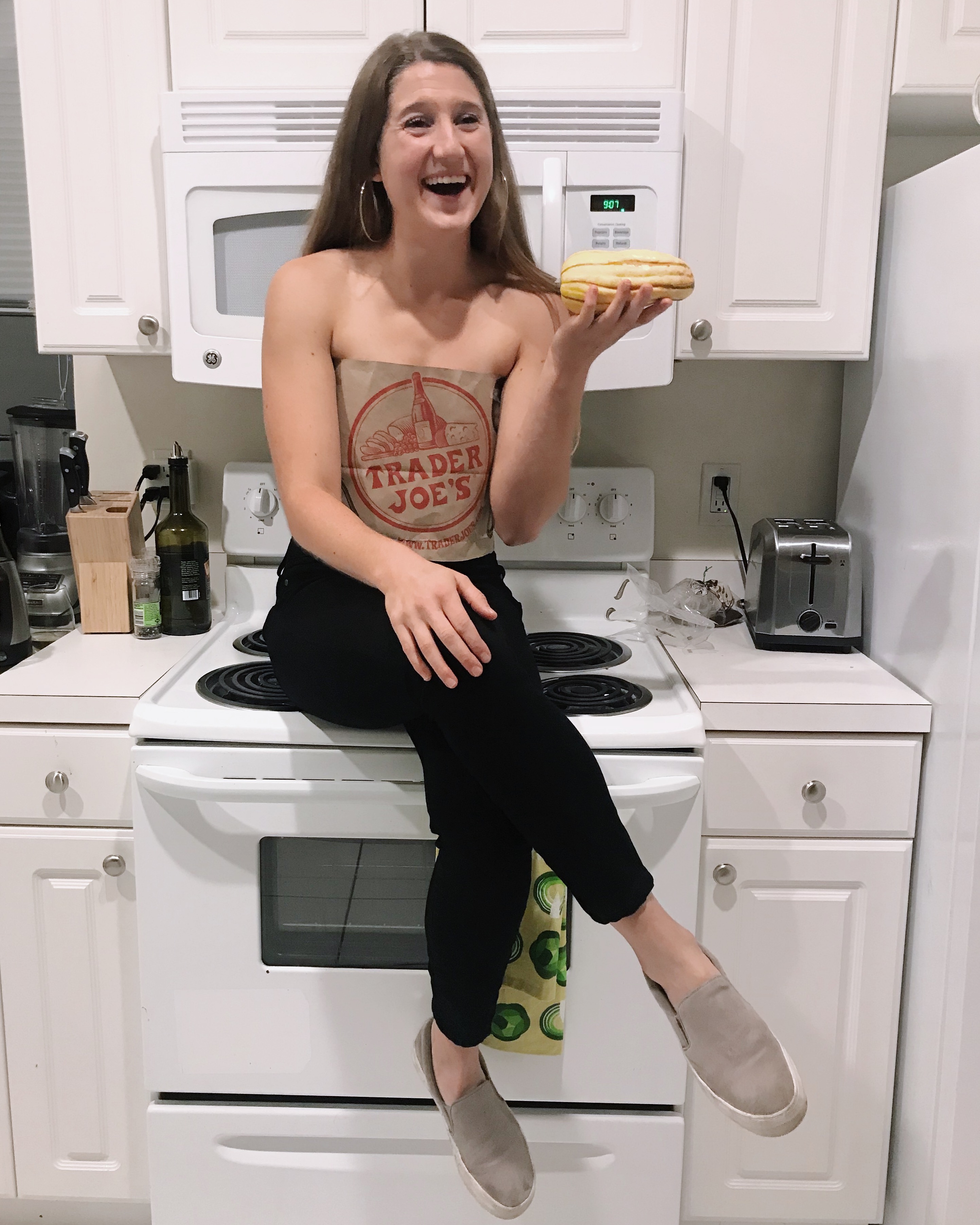 I can’t say I wear my heart on my sleeve, but I do wear who I am on my chest. It keeps life fun and makes me, Natasha, fwordsonly. My collection of feminist t-shirts is overflowing and my feminist mugs and pillows scatter my apartment. I unapologetically do things like fashion a recycled Trader Joe’s bag into a shirt to dress as a “trader hoe” for Halloween and sit on my stove to rule over my queendom (the kitchen – aka where I smash the patriarchy best).